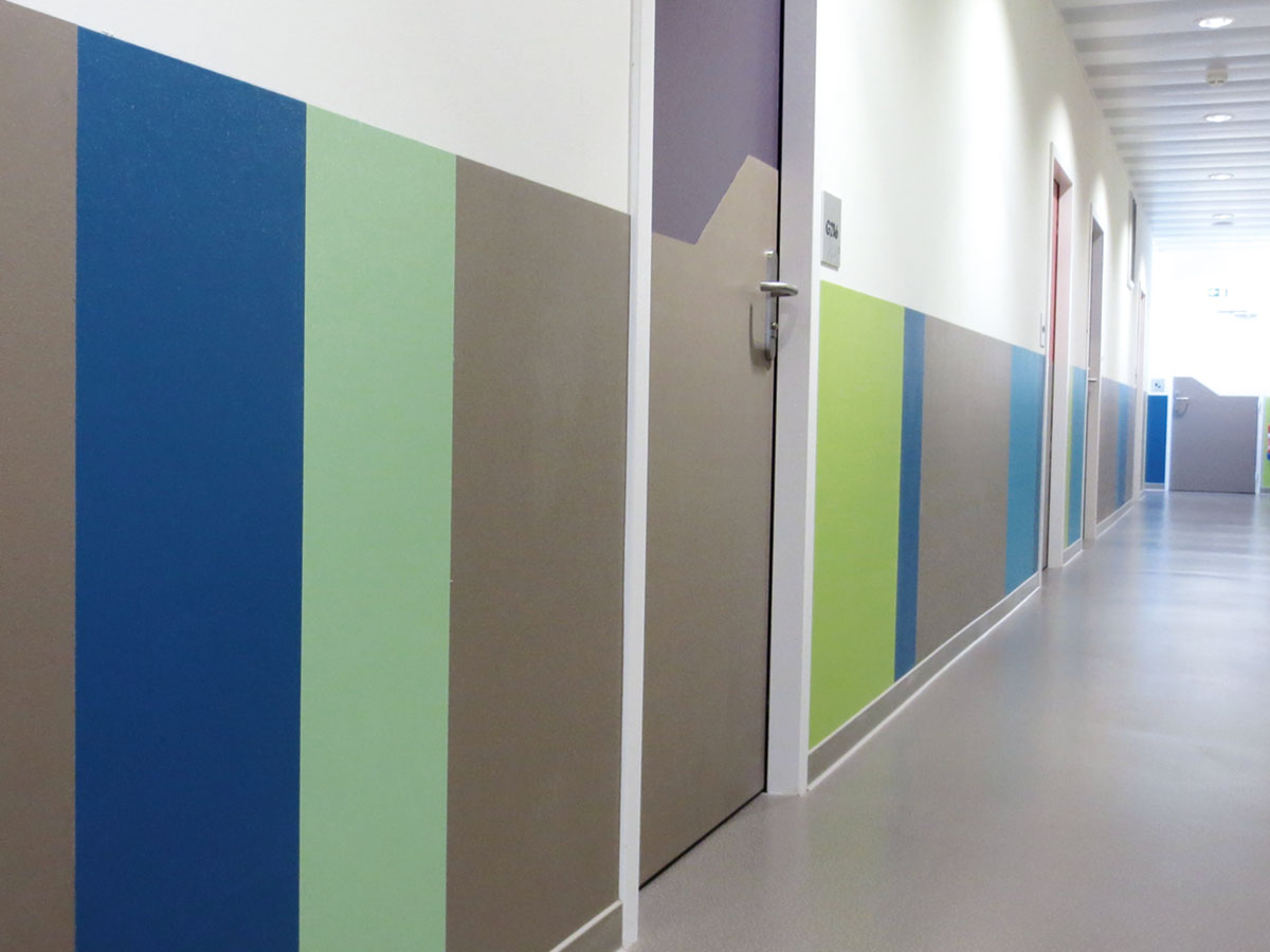 Les protections murales et mains courantes SPM s’intègrent harmonieusement dans tous les locaux grâce à un large choix de couleurs et décors.